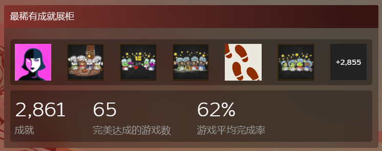 顾名思义,选择这个展柜会自动展示你目前最稀有的成就/成就完成数/完美达成的游戏数/游戏平均完成率。对白金党来说是一个很好的用来展示的展柜!