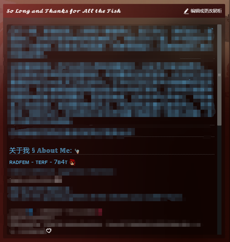 此处盟友可以发挥自己的创造力,尽情创造!所有想写的东西都可以放在这里。有一点是这个展柜的文字长度内容应该是不限的,但在主页只会直接显示以下截图这么长,其余部分需要滑动查看。所以想装修考虑视觉效果的需要考虑到这一点。