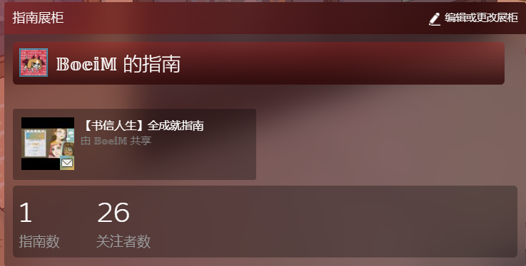 这里可以展示自己收藏的游戏指南,同时也有很多非游戏类的装饰性指南,比如以下这个指南,在steam主页显示的效果如图,可以起到一个装饰作用。这个大家可以自行寻找。(一个比较简单的方法是直接找一个已经装修好的好友,看她的主页有没有收藏的装饰性指南,找到一个点进去作者主页就能收获无数个装饰指南:)
