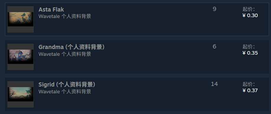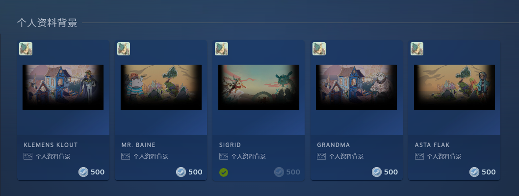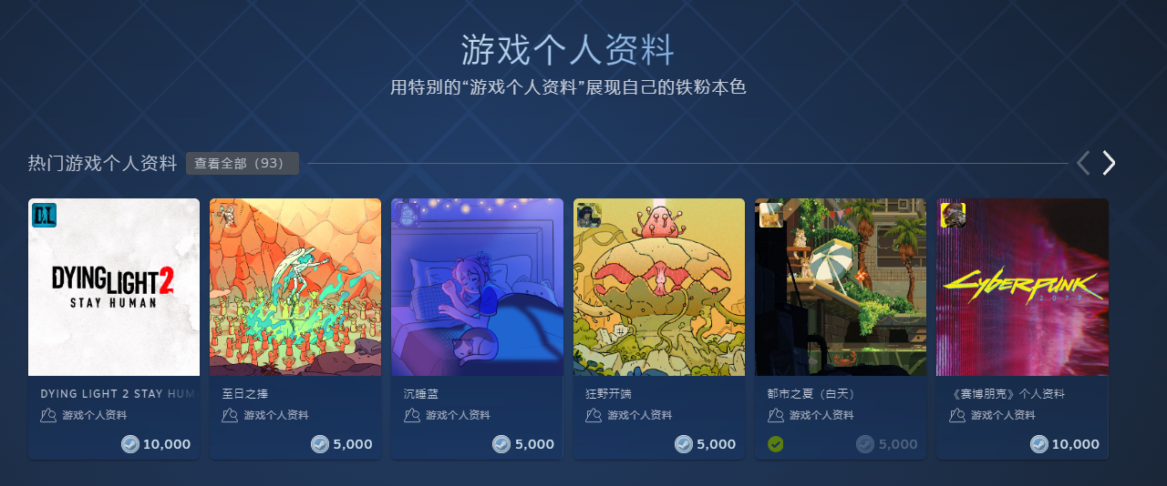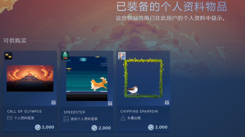 然后就能看到点数商店里卖的个人资料背景。这些都是可以装备到steam主页的背景图。