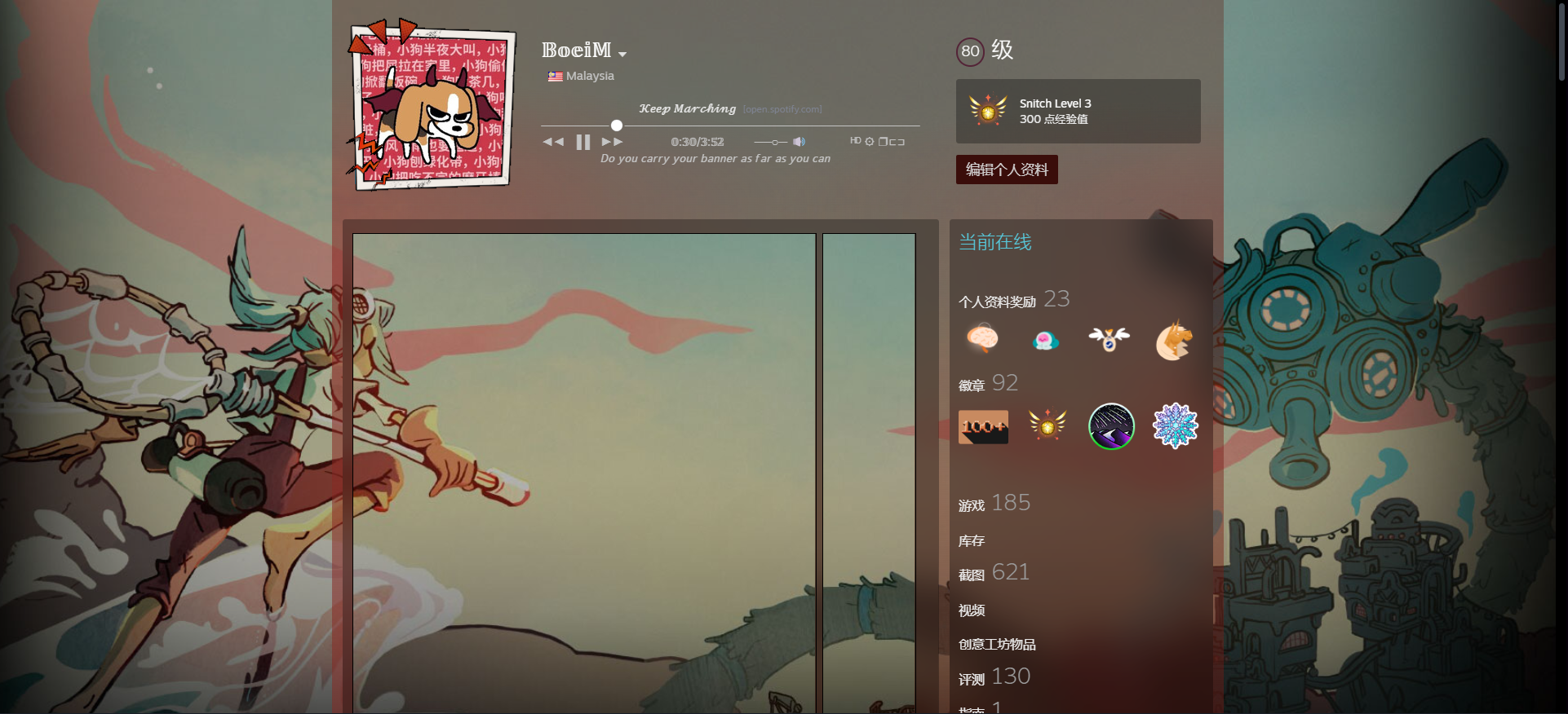 上面两种都是比较简单的装修!那么接下来是进阶教程:如何在steam主页放入一些比如自己喜欢的影视剧动图。