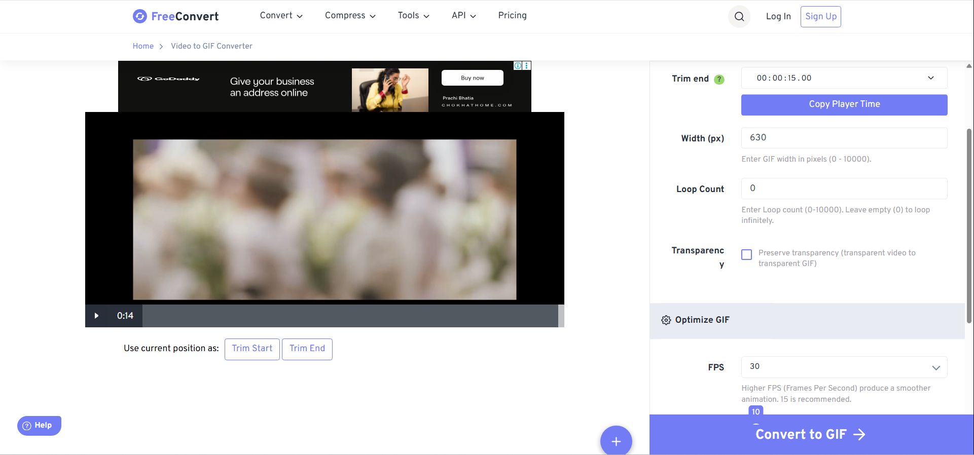 下载自己想要的视频,使用mp4转gif网站进行转换:https://www.freeconvert.com/convert/video-to-gif (上一节提到的软件对gif转换有帧率和时长的要求,所以用的这个。其实上一节转换的时候也可以用这个进行设置!更简单易懂一些)