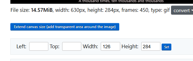 随后使用Crop进行裁剪。将宽度设为126,高度设为gif原始高度。点击设置并裁剪。