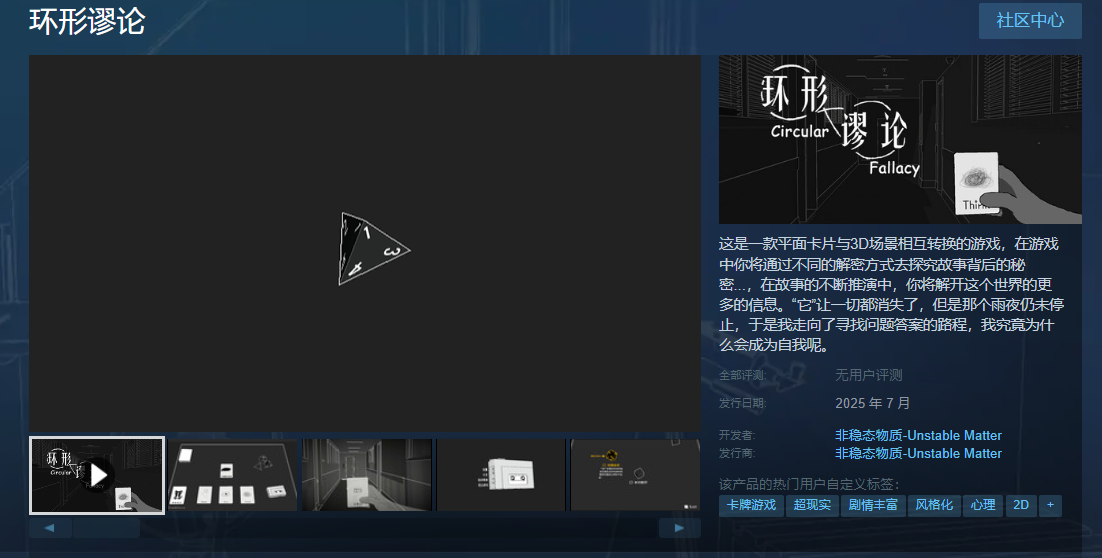 感想是玩法类似于文字规则怪谈+密教+极乐迪斯科,然后打着打着还从牌桌上下来开始3D走动又很邪恶冥刻。反正确实是我喜欢的,但是要素有点太多了让我实在是很觉得它是男的做的……