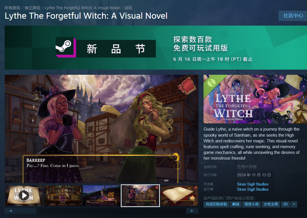 视觉小说游戏+微解谜。主角是女巫,但是这个立绘实在是很奇怪的腰和腿和裙子……看在制作人全女的份上还是玩了一下。