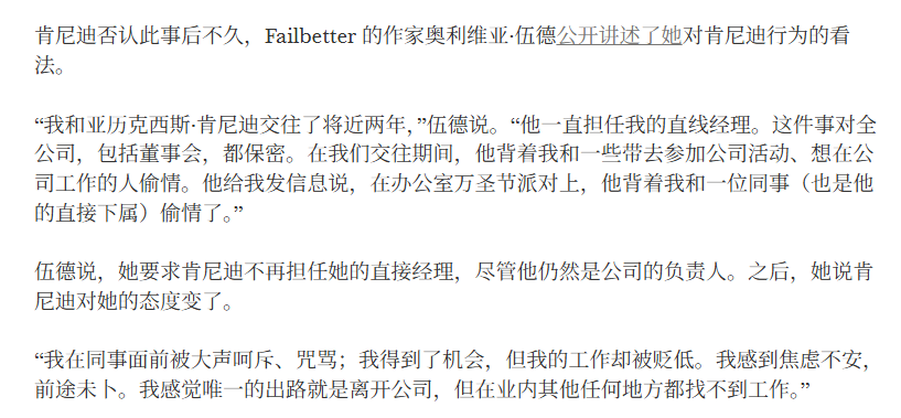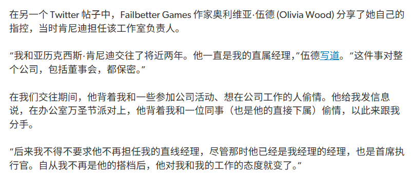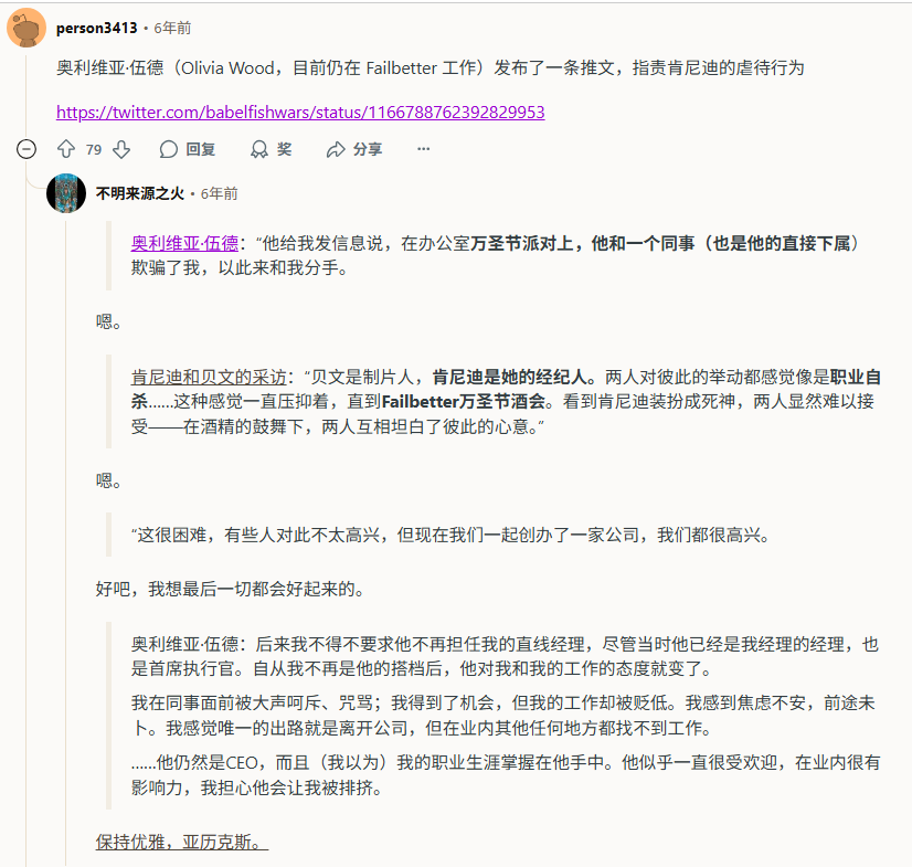 在这条讨论条里,有人提到点之前就职公司的员工Olivia Wood同样站出来指控了点。但这条推特已经被隐藏了,所以我放一下这个讨论条,里面有引用一部分指控。