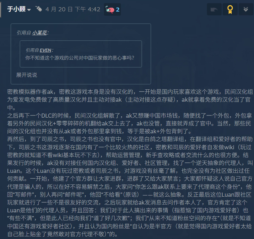 然后评论区有五字游戏玩家避雷密教(等等哪里不太对劲):