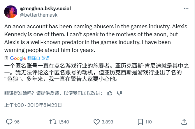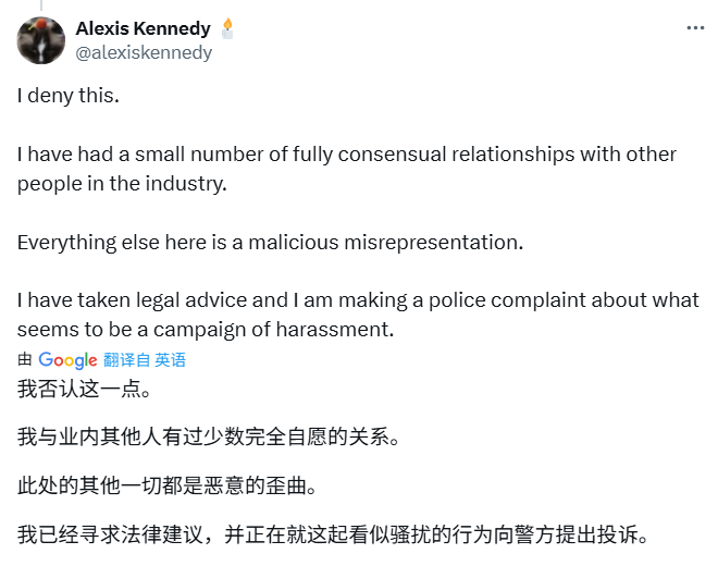 另,有人提到点的妻子,同样是游戏制作人的Lottie Bevan公开站出来为他辩护。